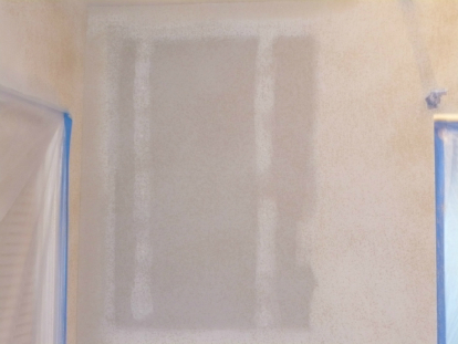 Restoration includes drywall, plastering. and orange peel texture to match existing